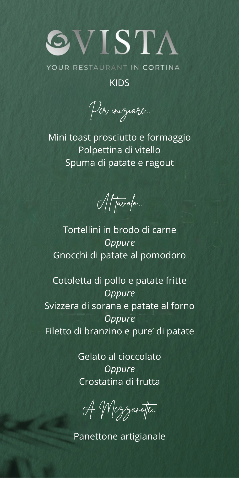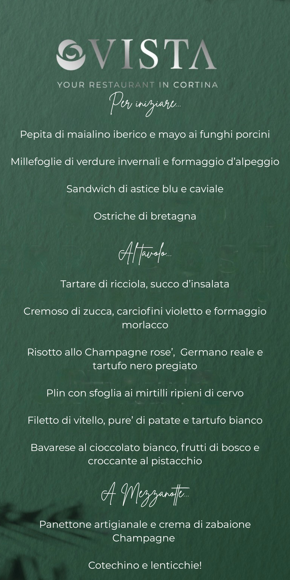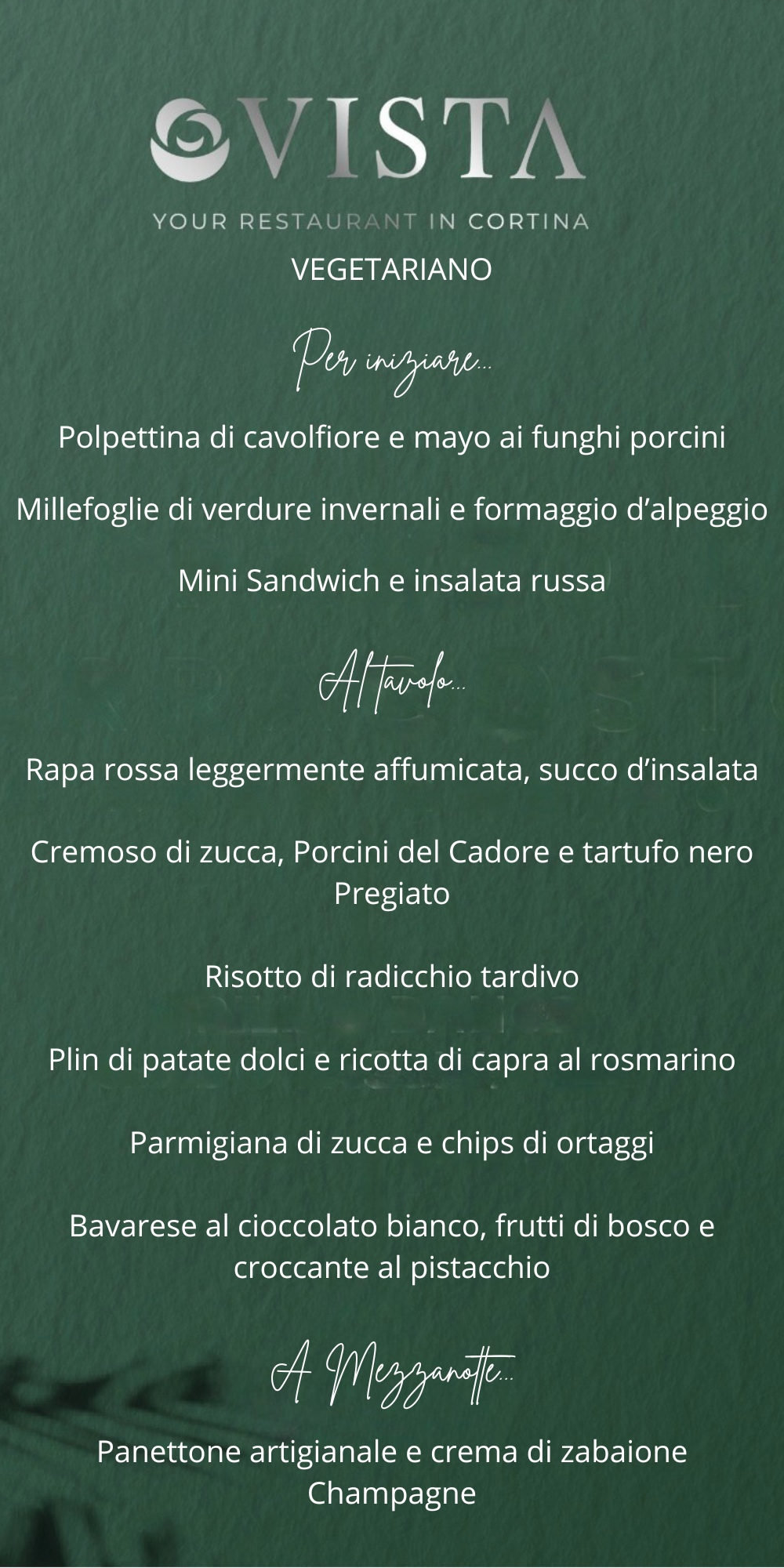 - Cenone del 31 dicembre al Ristorante VISTA (bevande escluse) con intrattenimento musicale